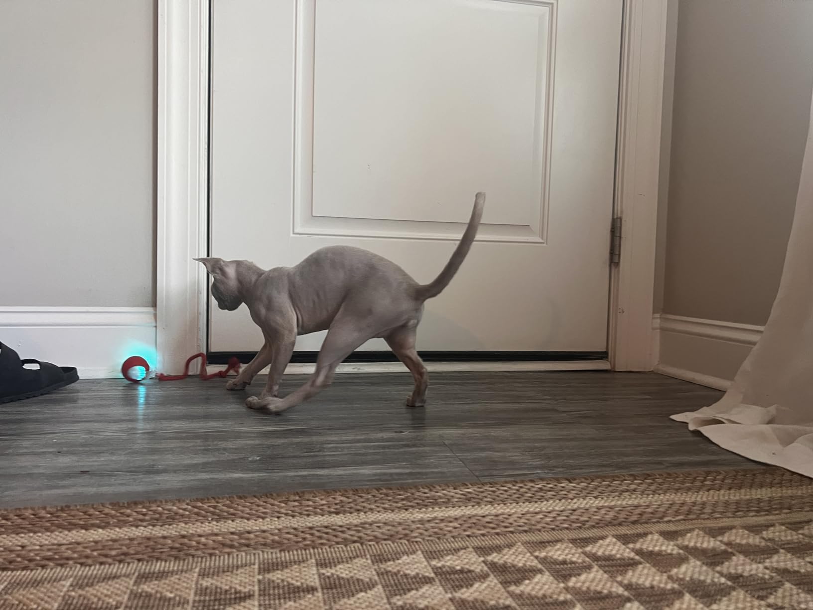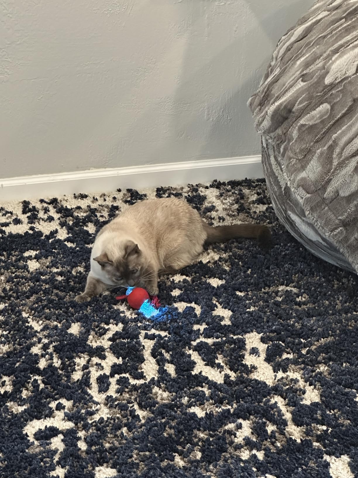 He chased it, then claimed it as his spot. I’ll take that as approval. Sarah M.