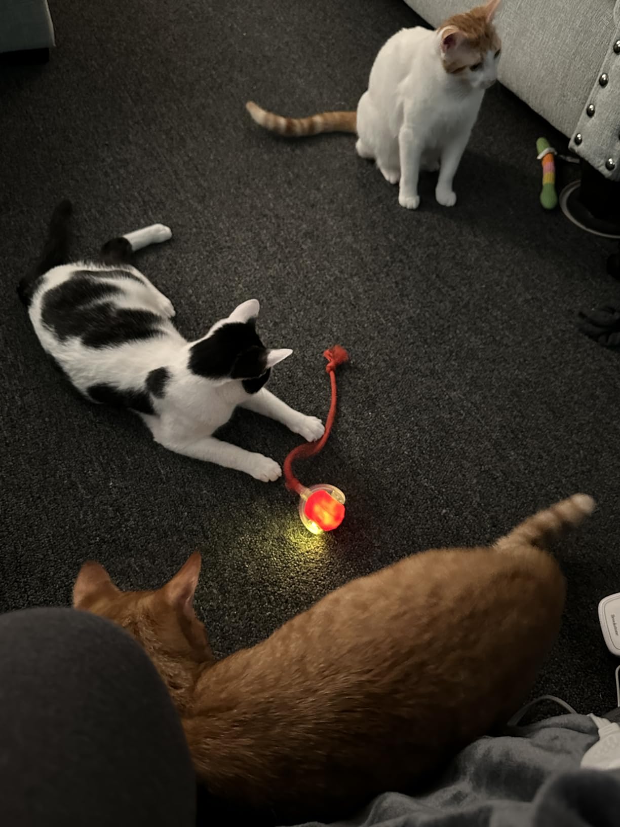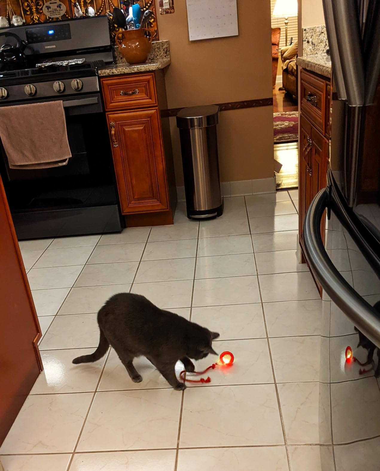 I’ve never seen her play this long with one toy. She was chasing it, flipping around, totally into it. I just sat there smiling. Emily K.