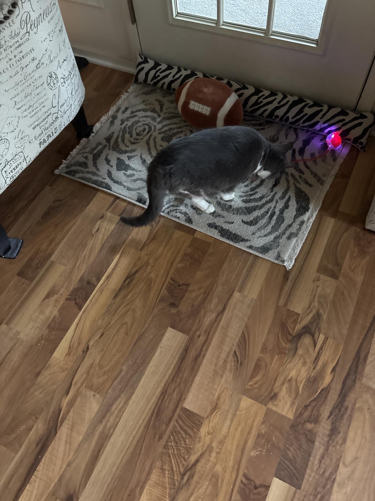 My fur baby loves this toy. So I love it. And the price is affordable. It gives her entertainment and exercise. Barbara J.