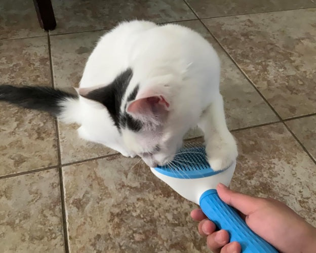 My cat absolutely loves this brush! And it actually works. Just press the button a couple of times and the hole thing is clean and not one hair was left on it. Great product and great price.